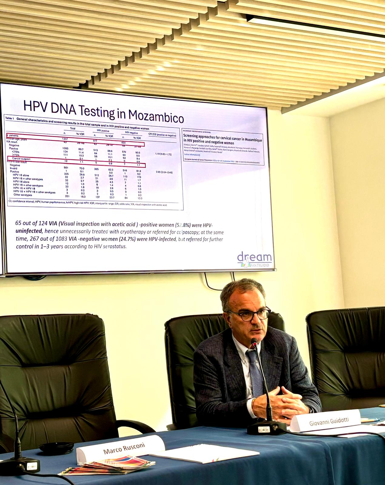 Il Dott. Giovanni Guidotti, Segretario Generale del Programma DREAM della Comunità di Sant’Egidio ha presentato il programma, attivo in 10 Paesi africani, con 50 centri di cura, 28 laboratori di biologia molecolare gestiti direttamente da personale locale, sottolineando l’utilità di accompagnare gli sforzi per una buona sanità alla ricerca scientifica applicata ed ha enfatizzato quelle che sono le sfide attuali in Africa, a cui DREAM cerca di rispondere, tra cui le c.d. malattie non trasmissibili, il cancro del collo dell’utero, la tubercolosi, la DTG resistance, la necessità di adottare modelli di cura differenziati e di porre crescente attenzione alla neurologia.