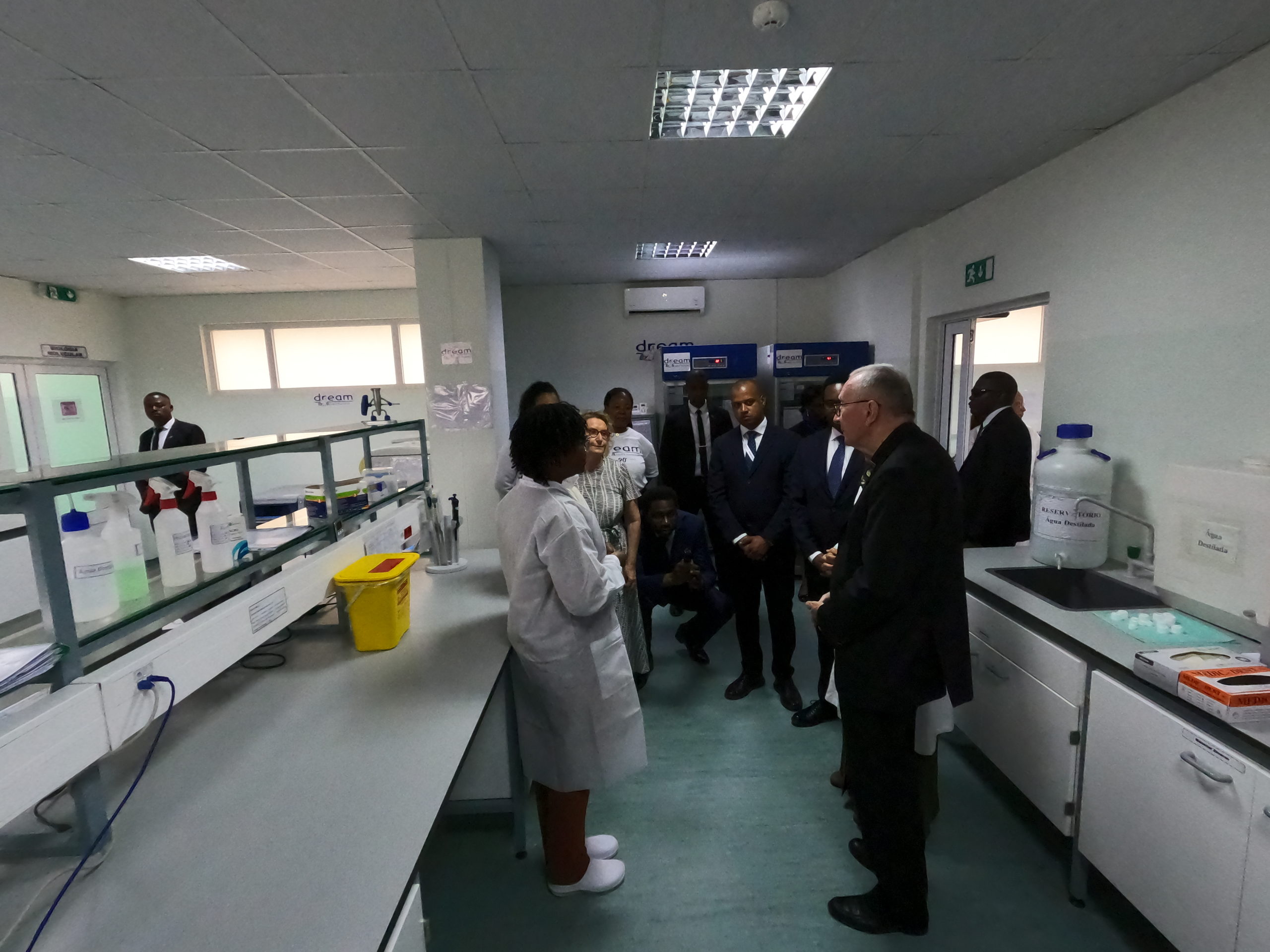 Visitando il laboratorio di biologia molecolare si è complimentato per la tecnologia avanzata e per l’alto livello di formazione del personale e ha incontrato un gruppo di adolescenti della scuola di cucito e i servizi di telemedicina. Nelson Moda, a nome di Sant’Egidio, ha rivolto un saluto di ringraziamento.